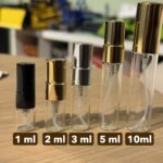 Dufteriet tilbyr dekantstørrelser på 1 ml, 2 ml, 3 ml 5 ml og 10 ml. Har også et utvalg av større flasker: 15 ml, 30 ml og 50 ml. Pris på forespørsel til post@dufteriet.no Alle leveres i sprayflasker av glass.